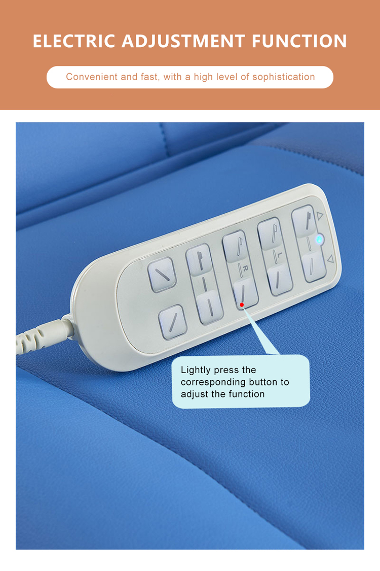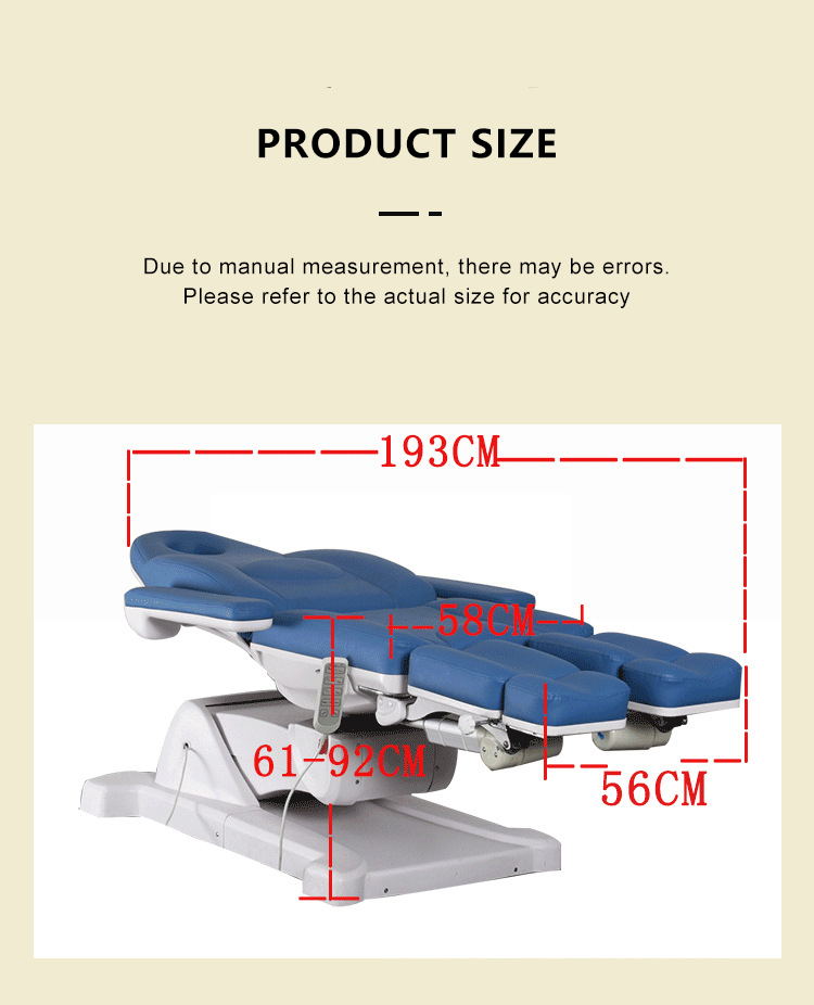 3 motores (altura, apoio para os pés, encosto elétrico) ajuste, 2 pernas divididas com ajuste manual) 5 motores (altura, 2 pernas bipartidas, encosto, inclinação) e elétrico ajuste) |