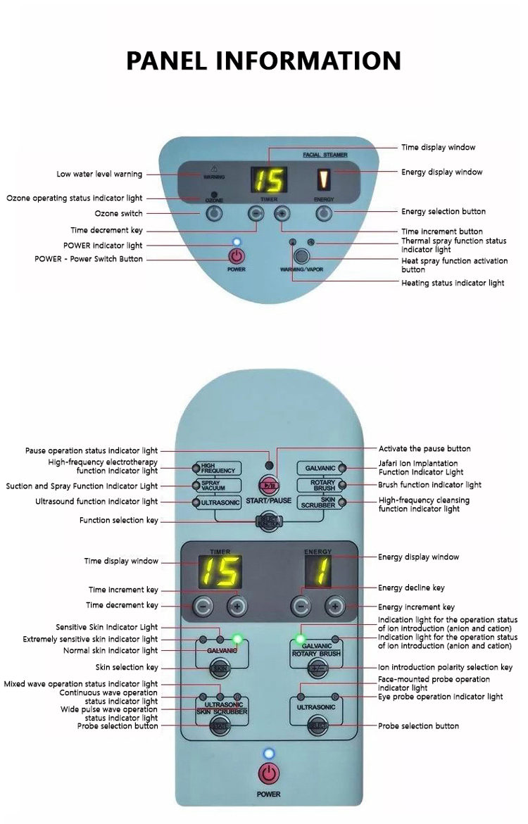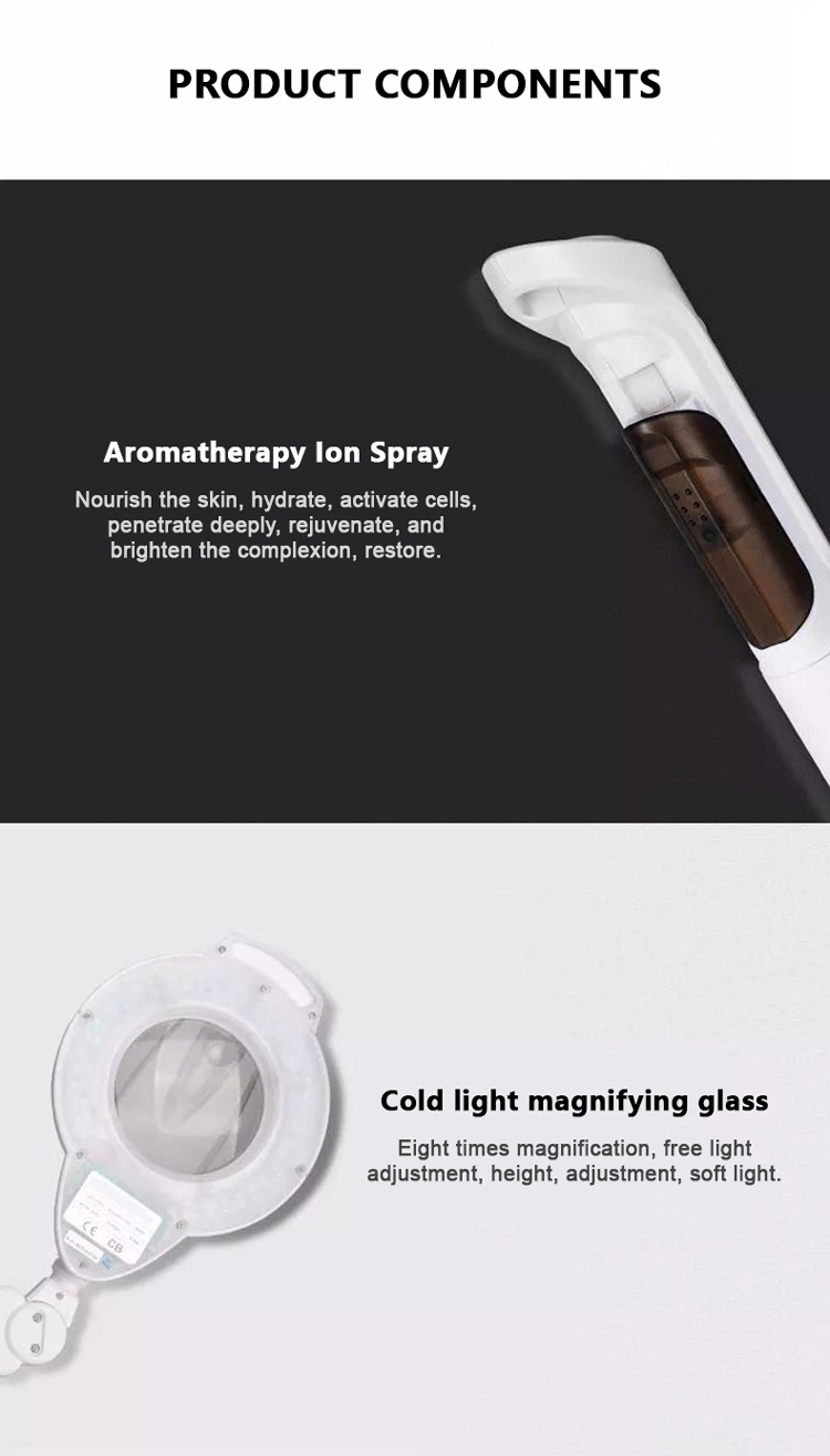 Aparelho de beleza multifuncional / ultrassônico / esfoliador de pele / alta frequência / escova rotativa / galvânico / aspirador de spray / vaporizador facial / lupa